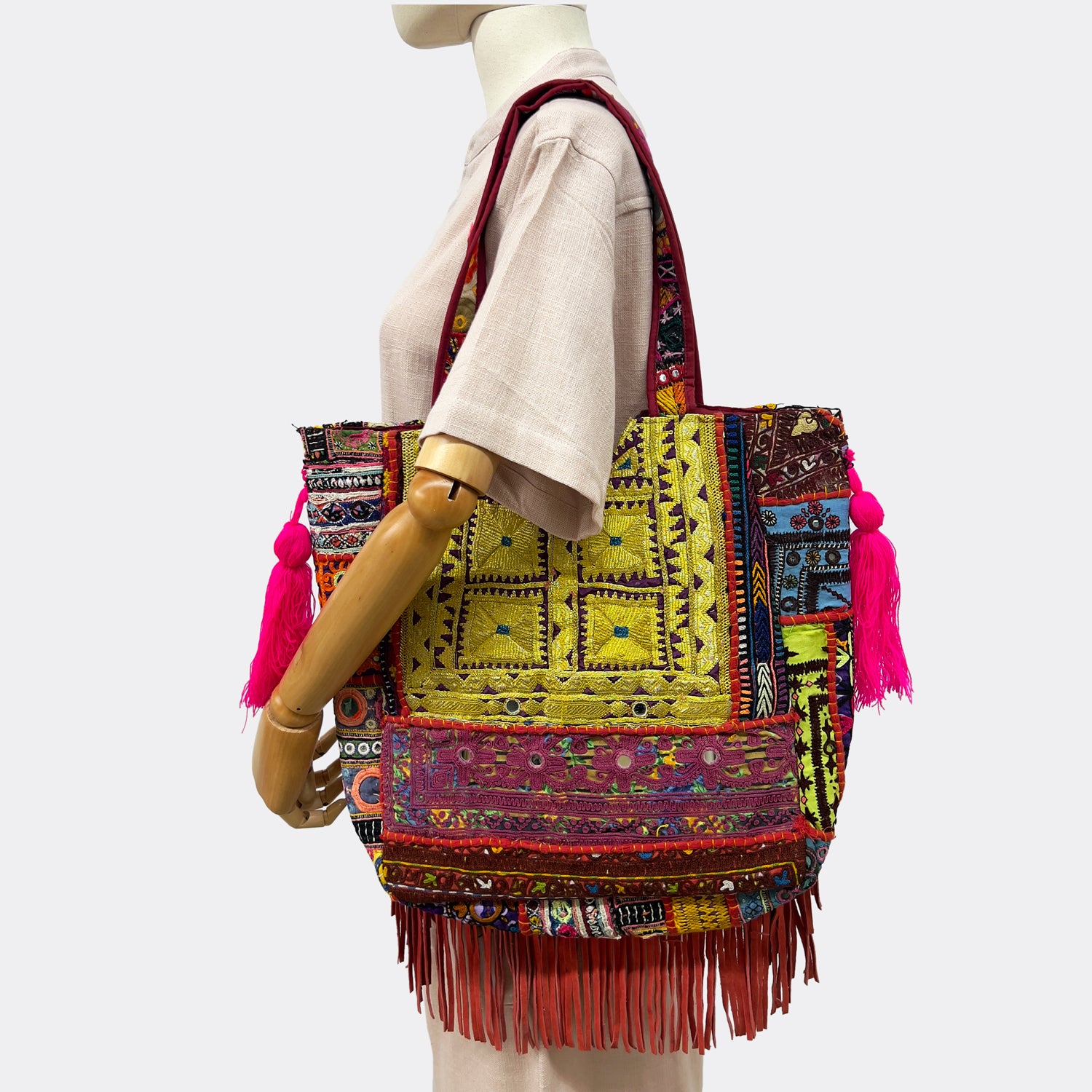 Medidas: Alto x Ancho x Fondo: 42 x 42 x 38 cm / Altura del asa del bolso: 25cm. Completamente elaborado artesanalmente con materiales seleccionados. Hecha en India.