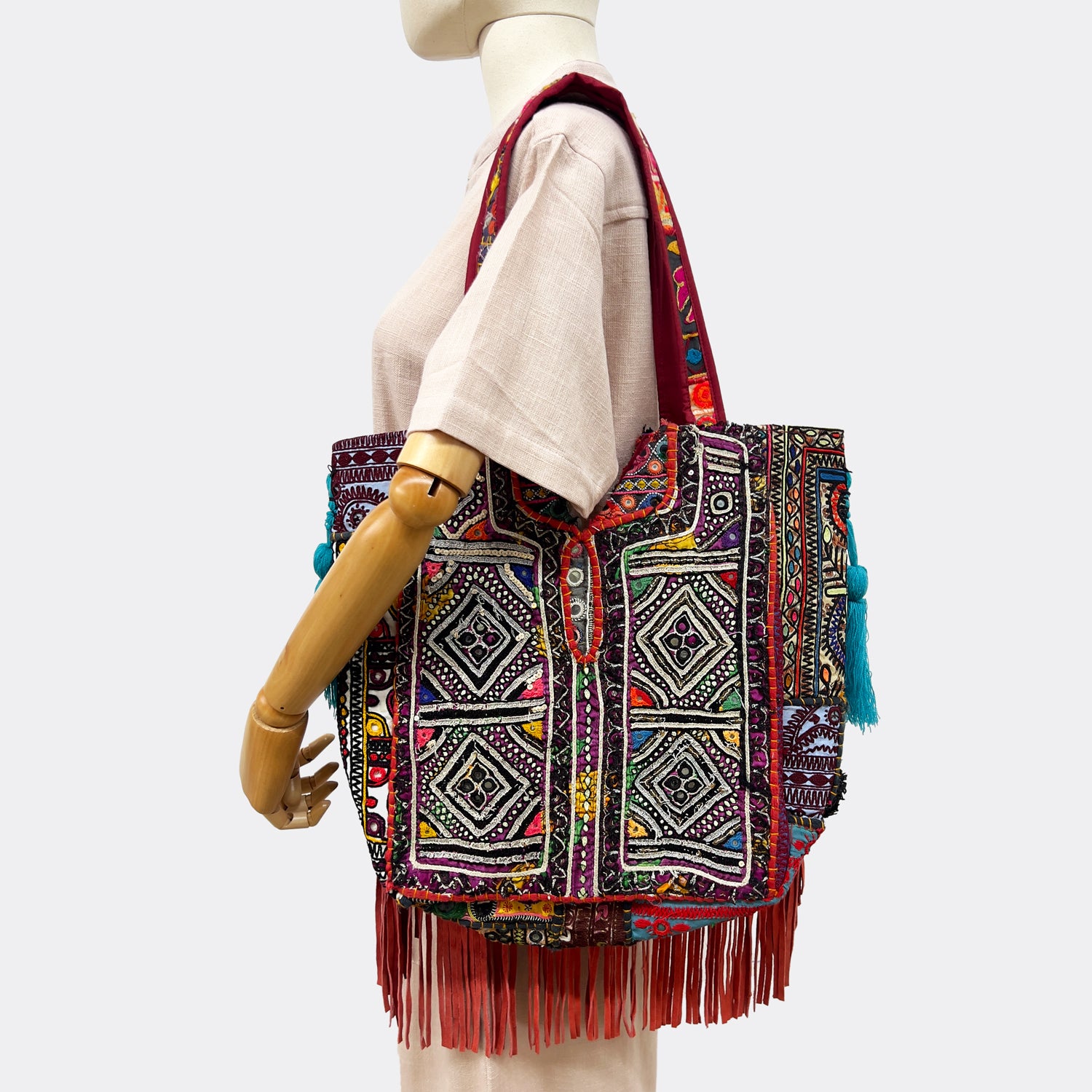 Medidas: Alto x Ancho x Fondo: 42 x 42 x 38 cm / Altura del asa del bolso: 25cm. Completamente elaborado artesanalmente con materiales seleccionados. Hecha en iNDIA.
