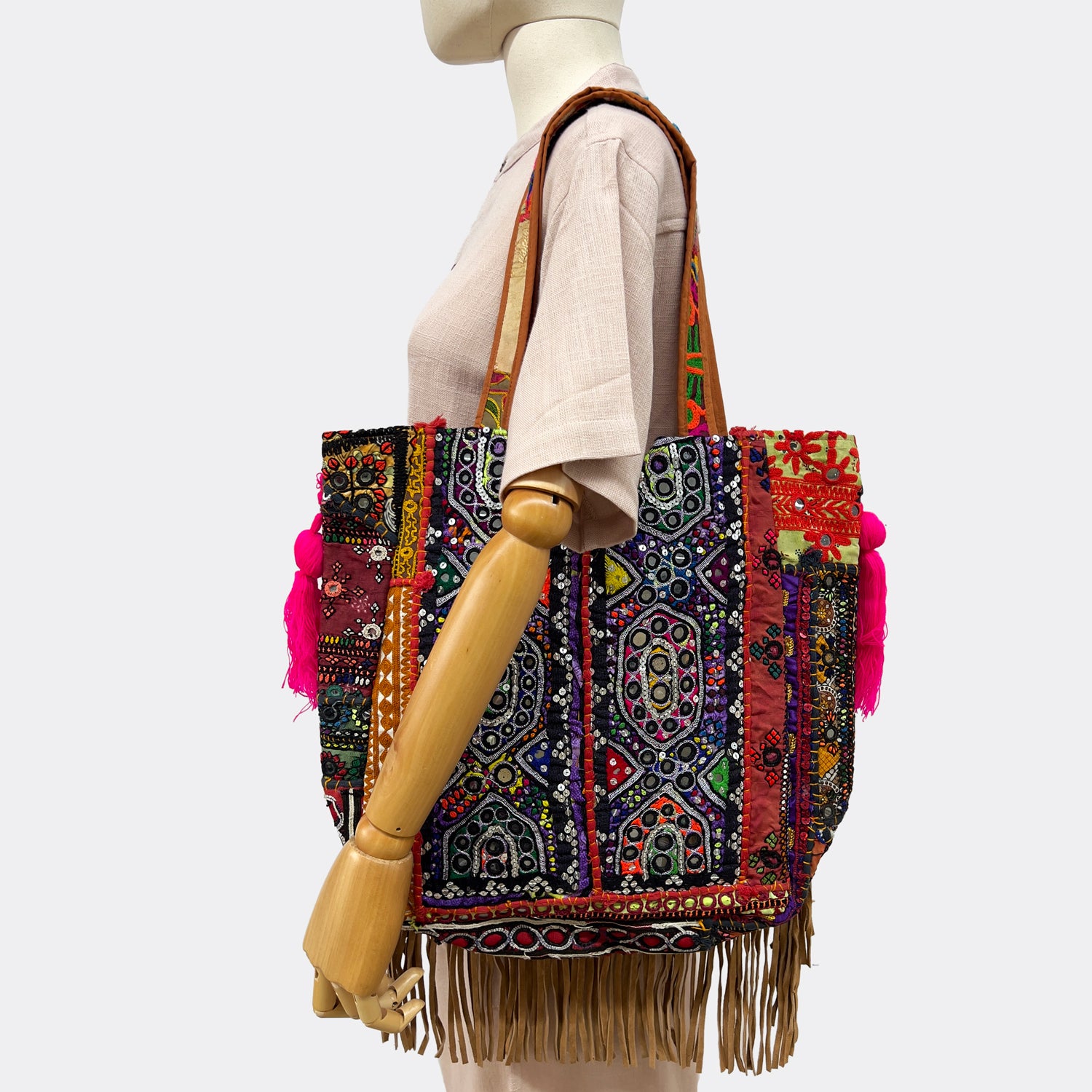 Medidas: Alto x Ancho x Fondo: 42 x 42 x 38 cm / Altura del asa del bolso: 25cm. Completamente elaborado artesanalmente con materiales seleccionados. Hecha en India.