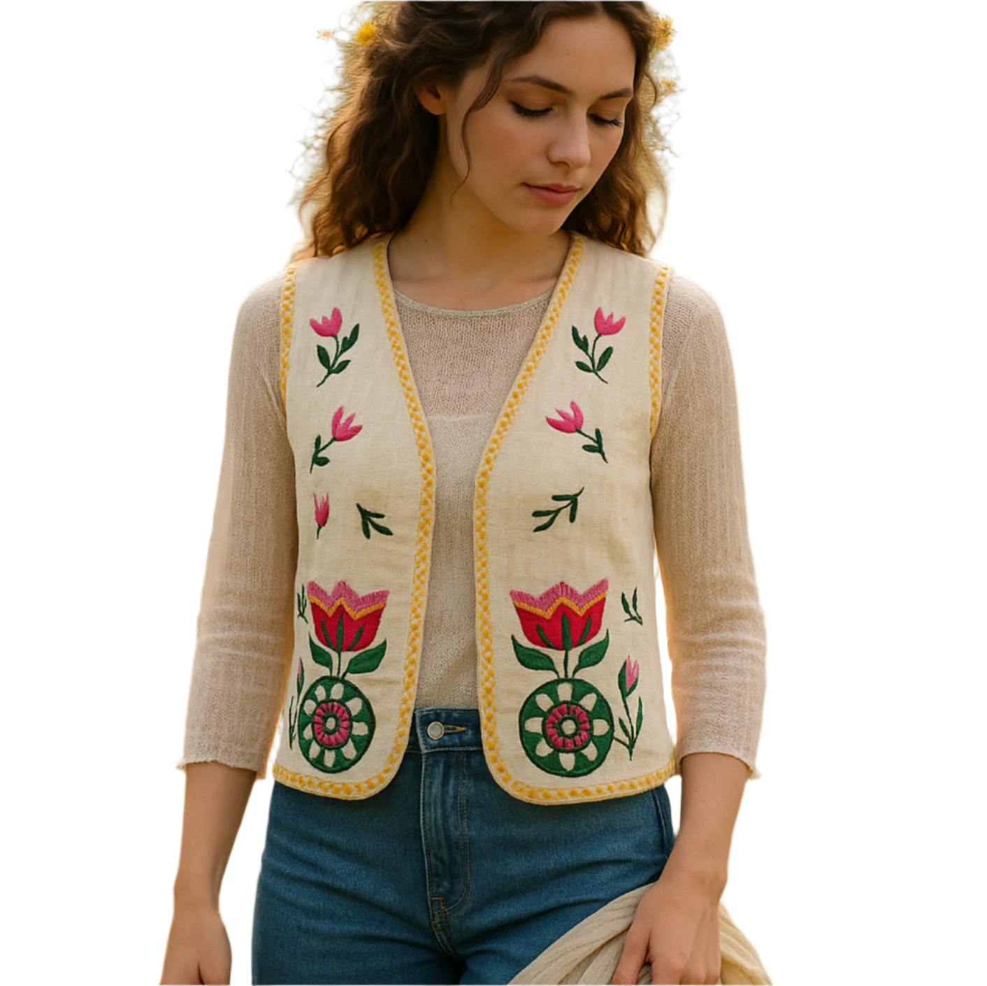 Chaleco abierto. Medidas: Talla Unica / Pecho: 55cm / Largo: 45cm / Ancho Espalda: 35cm / Composición: Algodón / Origen: Hecho en CHINA.
