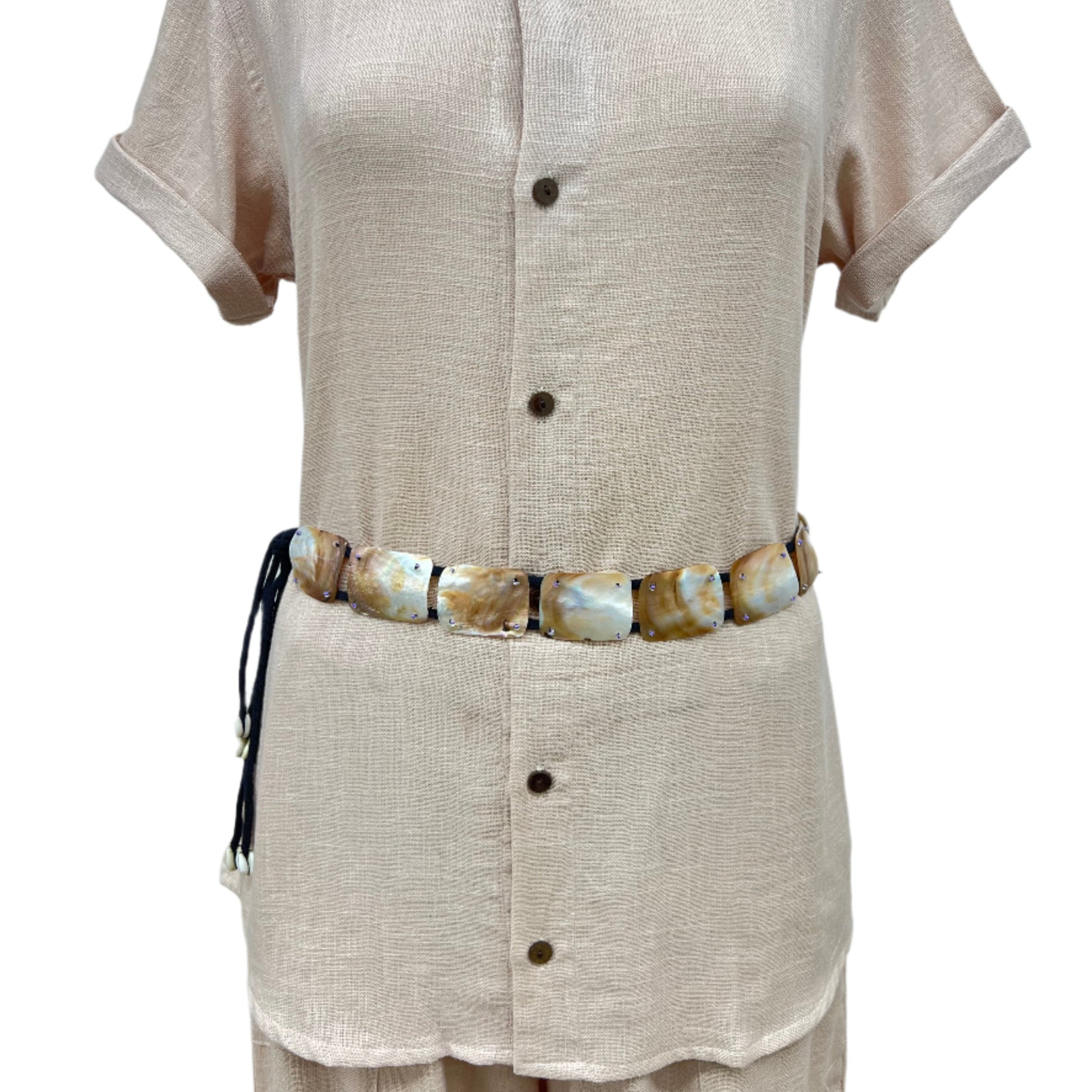 Medidas: Cinturón de cuero de 3,5cm de ancho / 70-110cm de largo/ Longitud ajustable / Elaborado con conchas marinas seleccionadas a mano.