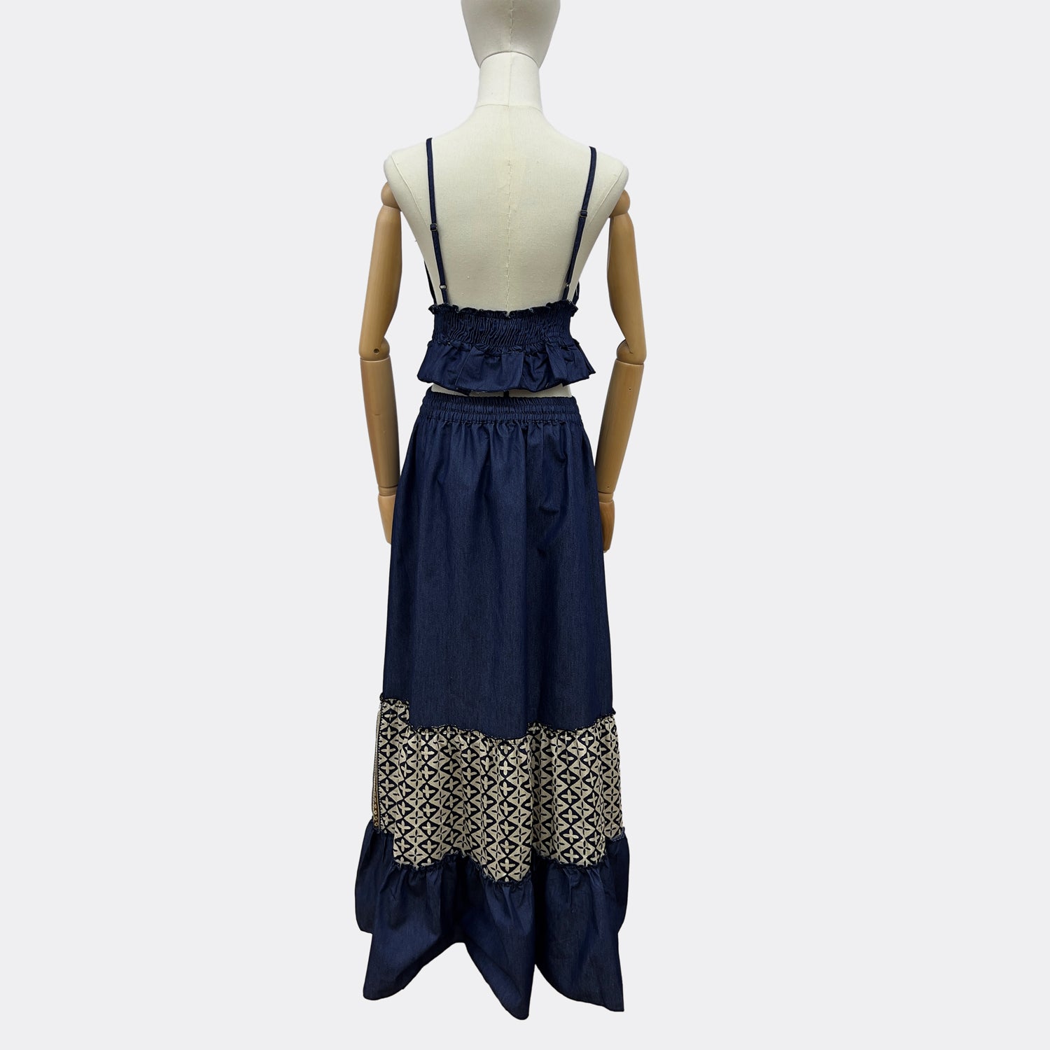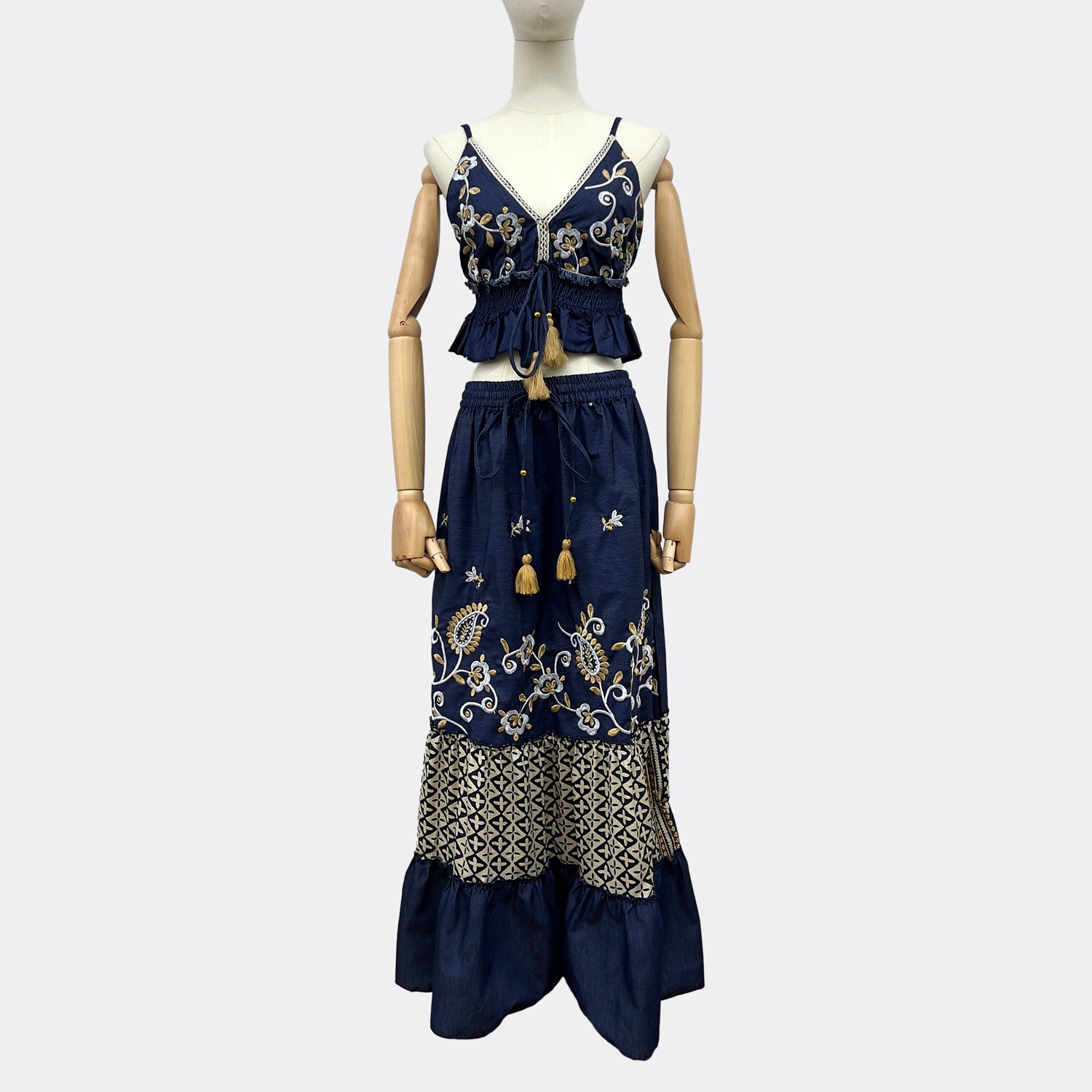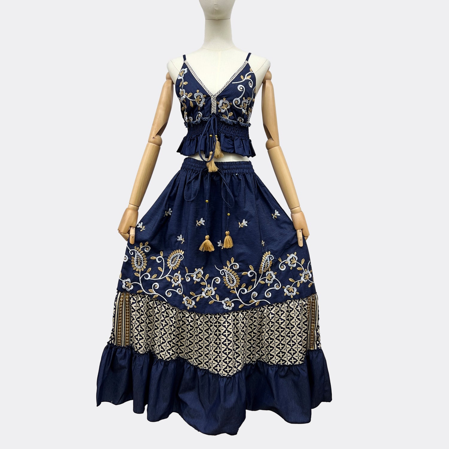TOP / Medidas : Talla Unica / Pecho: 35-50cm / Largo: 44cm / FALDA / Medidas : Talla Unica / Cintura: 33-50cm / Ancho Abajo: 150cm / Largo: 98cm / Composición: Viscosa / Origen: Hecho en iNDIA