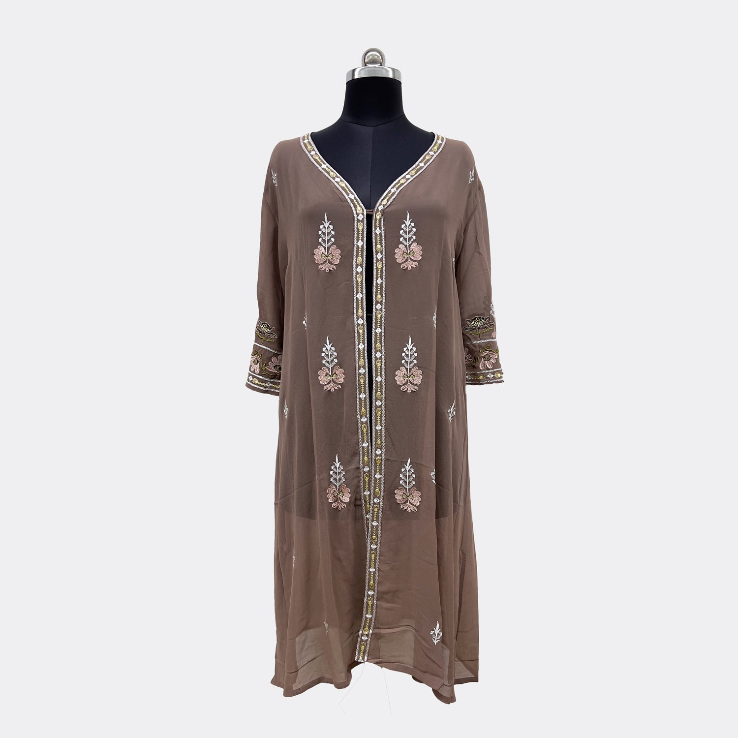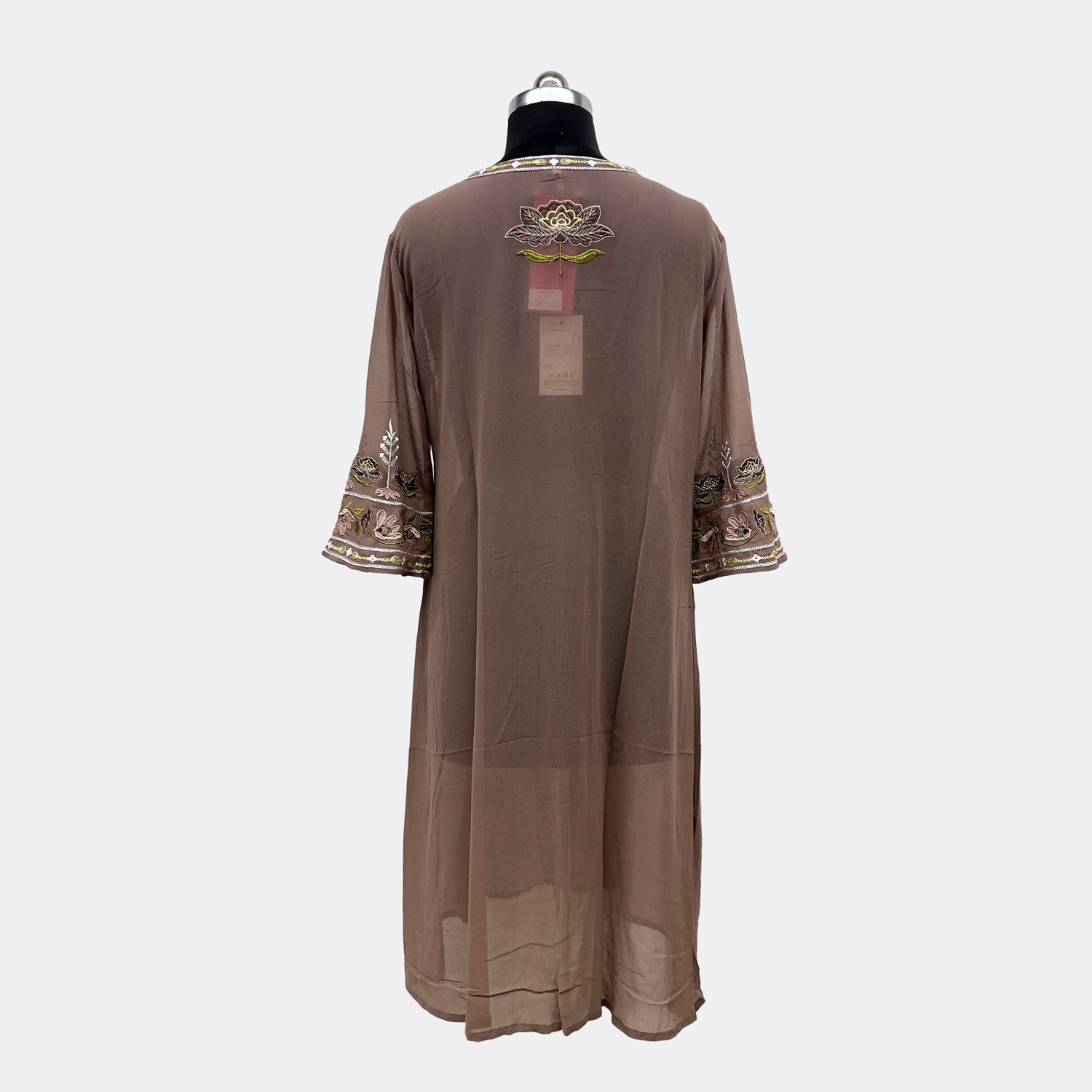 Medidas : L/XL / Pecho: 64cm / Cintura: 70cm / Largo: 122cm / Largo de Manga: 46cm / Ancho de Brazo: 19cm / Ancho Espalda: 51cm / Ancho Abajo: 90cm / Composición: Poliéster / Origen: Hecho en iNDIA.