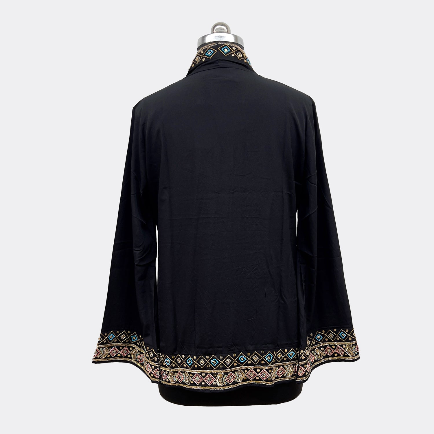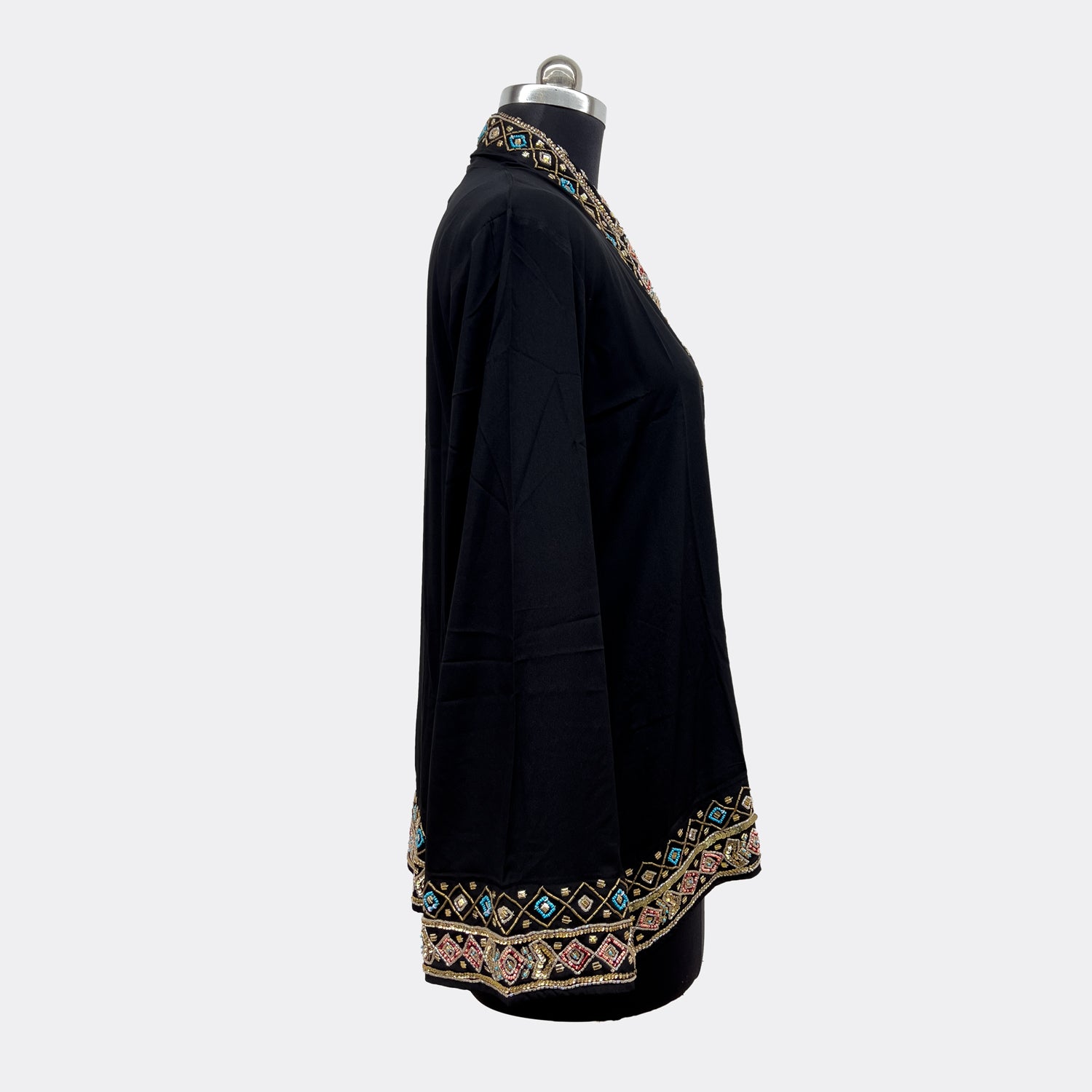 Medidas : L/XL / Pecho: 57cm / Cintura: 63cm / Largo: 75cm / Largo de Manga: 63cm / Ancho de Brazo: 20cm / Ancho de puños: 22cm / Ancho Espalda: 45cm / Composición: Poliéster / Origen: Hecho en iNDIA.