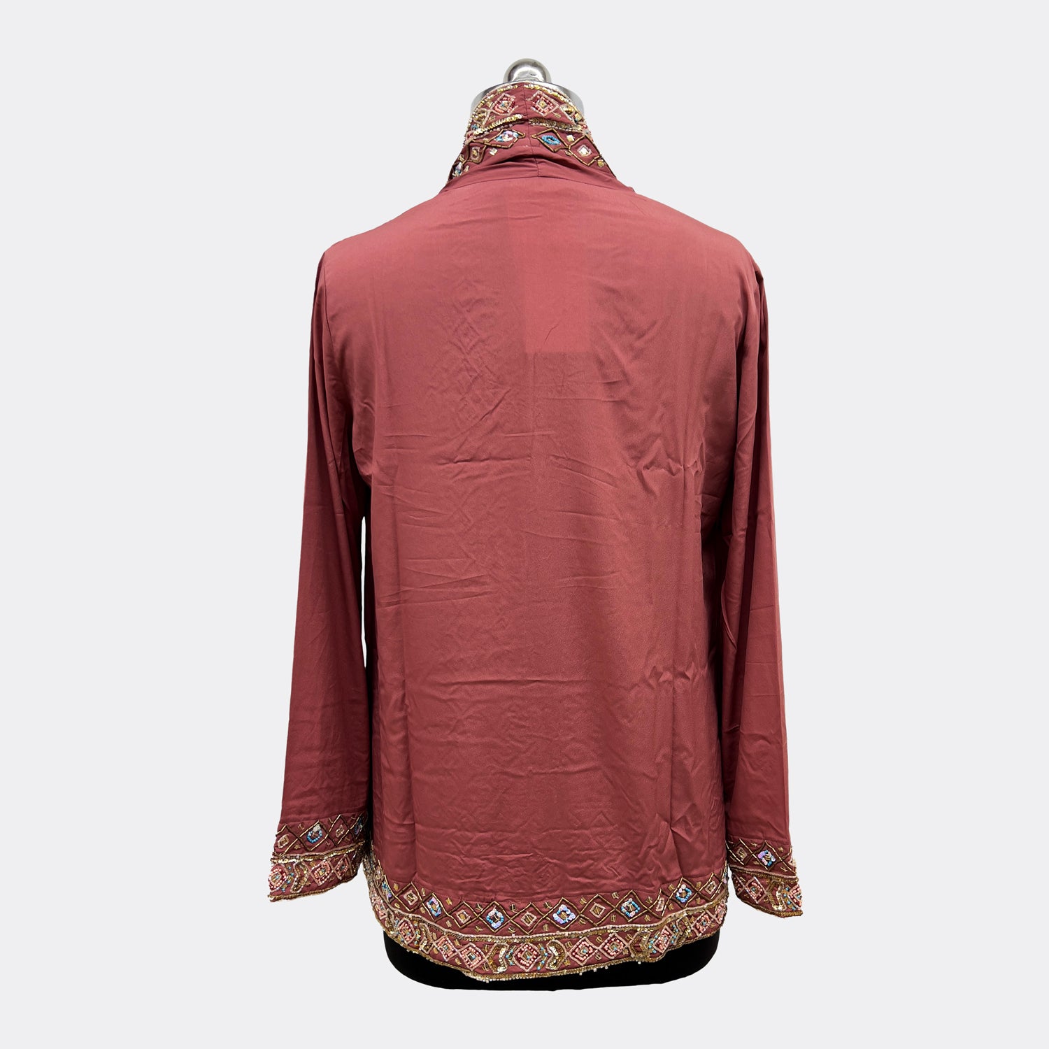 Medidas : L/XL / Pecho: 57cm / Cintura: 63cm / Largo: 75cm / Largo de Manga: 63cm / Ancho de Brazo: 20cm / Ancho de puños: 22cm / Ancho Espalda: 45cm / Composición: Poliéster / Origen: Hecho en iNDIA.