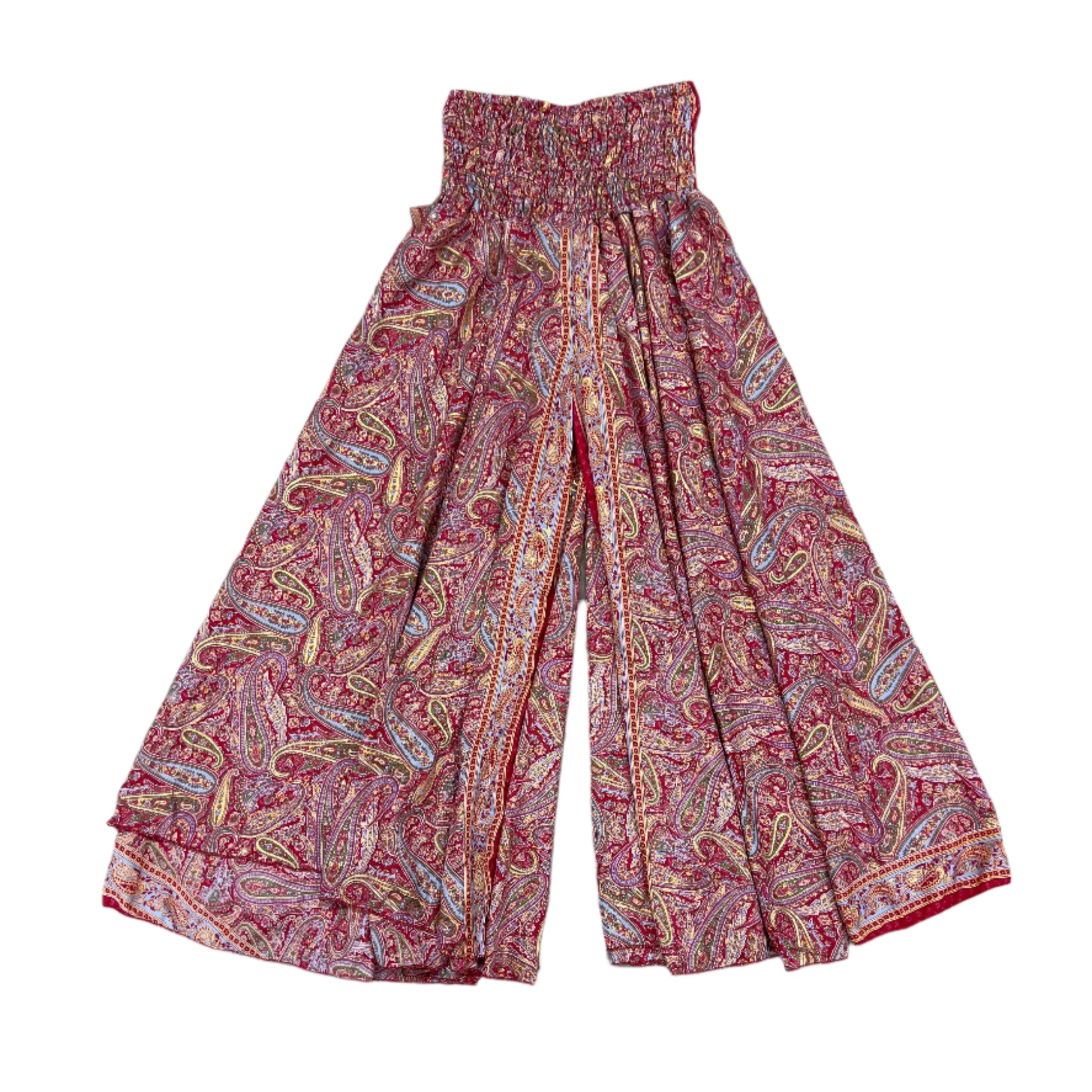 Medidas: Talla Unica / Cintura: 30-55cm / Ancho de Goma Arriba: 15cm / Cadera: 80cm / Ancho Abajo: 150cm (Una sola pierna) / Largo: 98cm / Abertura de pierna: 150cm / Tiro Delantero: 36cm / Tiro Trasero: 36cm / Composición: Poliéster Y Seda / Origen: Hecho en iNDIA