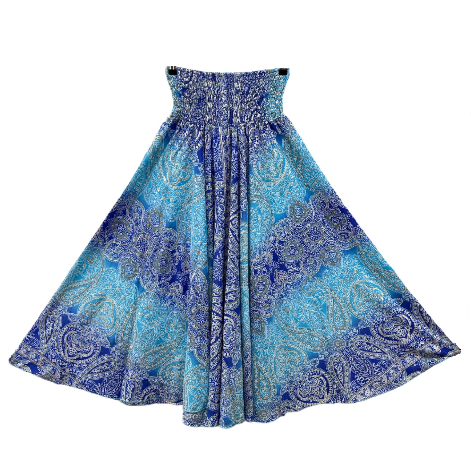 Medidas: Talla Unica / Cintura: 30-55cm / Ancho de Goma Arriba: 14cm / Cadera: 80cm / Ancho Abajo: 150cm (Una sola pierna) / Largo: 98cm / Abertura de pierna: 150cm / Composición: Poliéster Y Seda / Origen: Hecho en iNDIA