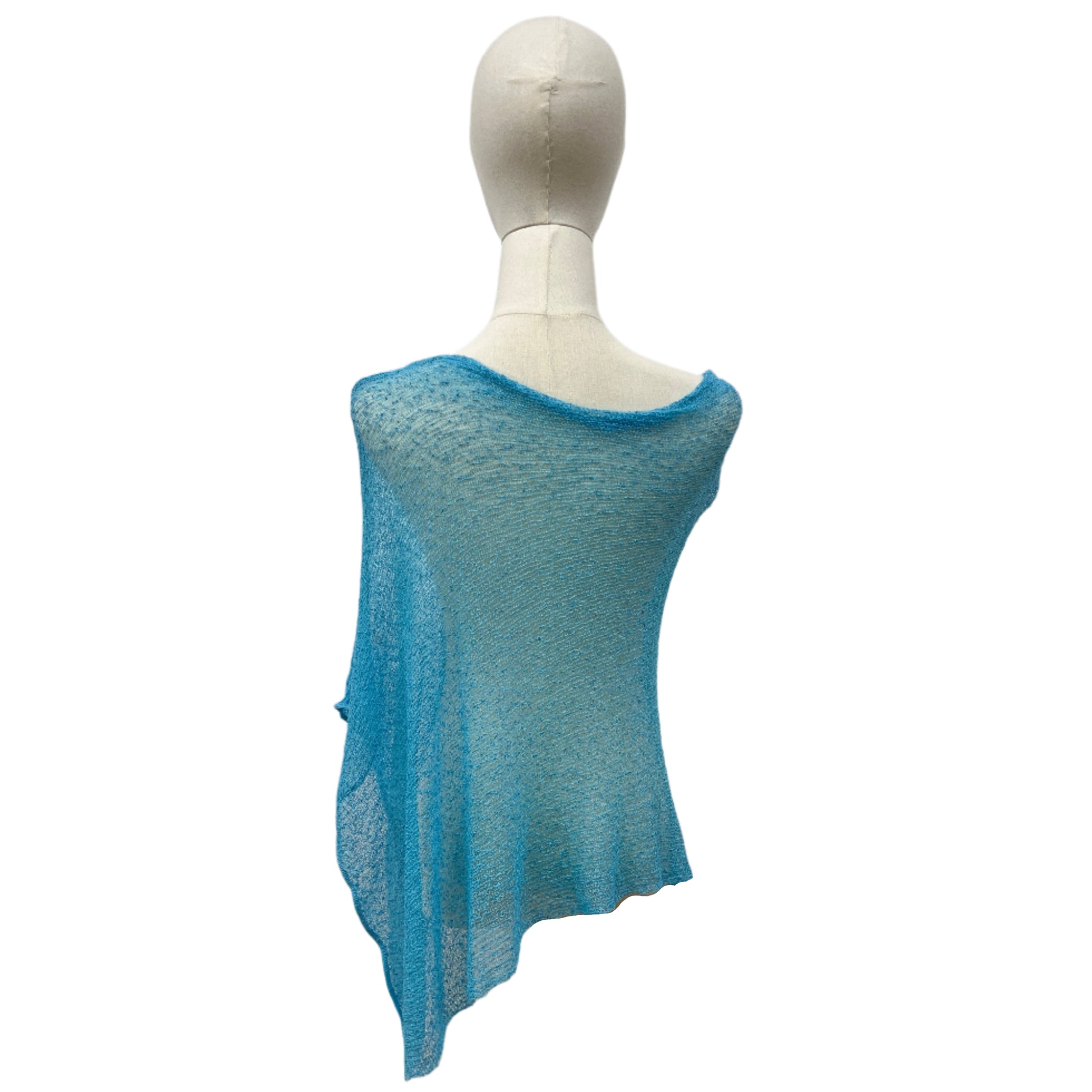 El poncho de punto ligero es un accesorio imprescindible para el verano gracias a su sencillez, elegancia y versatilidad. Se puede usar como chal, capa, poncho, bufanda, para cubrir los brazos o el pecho, o dondequiera que te sientas expuesta y necesites algo de cobertura ligera sin ocultar por completo tu atuendo ni resultar pesada.