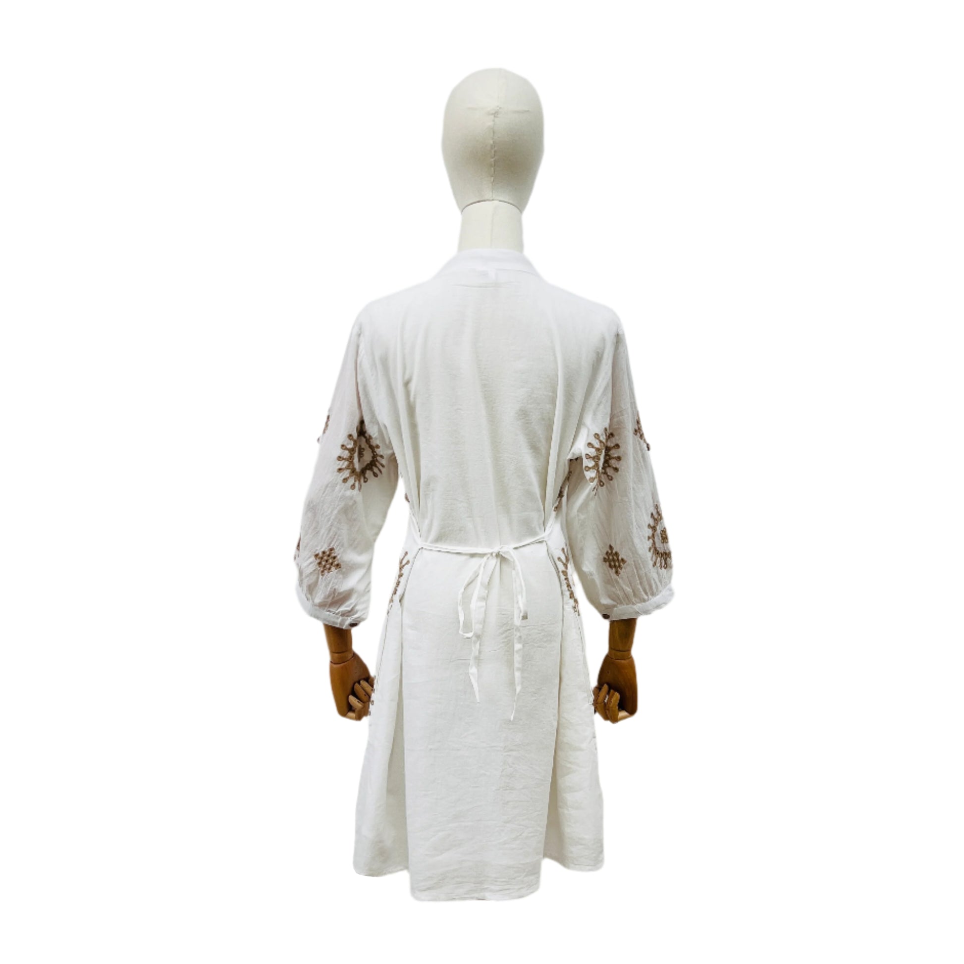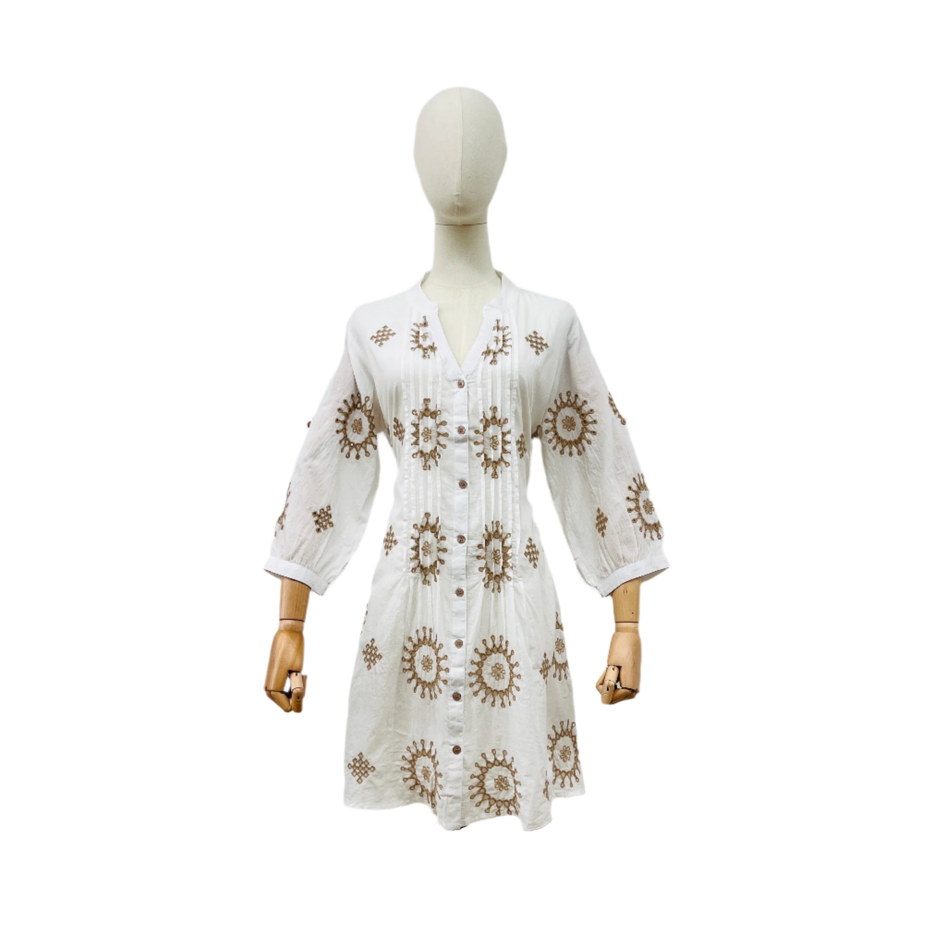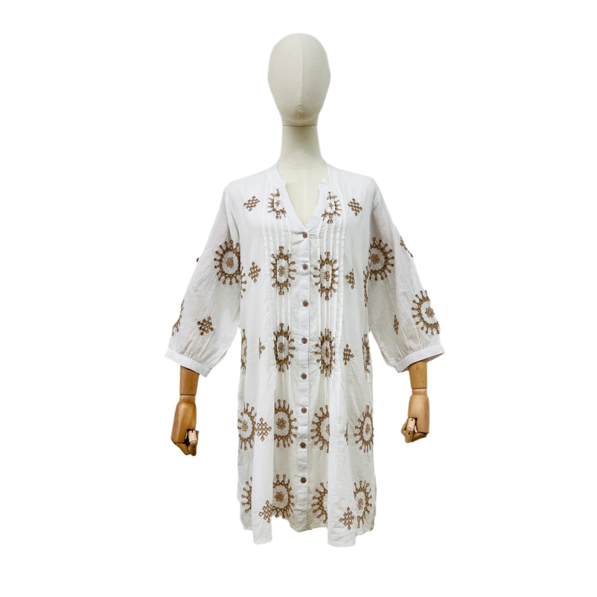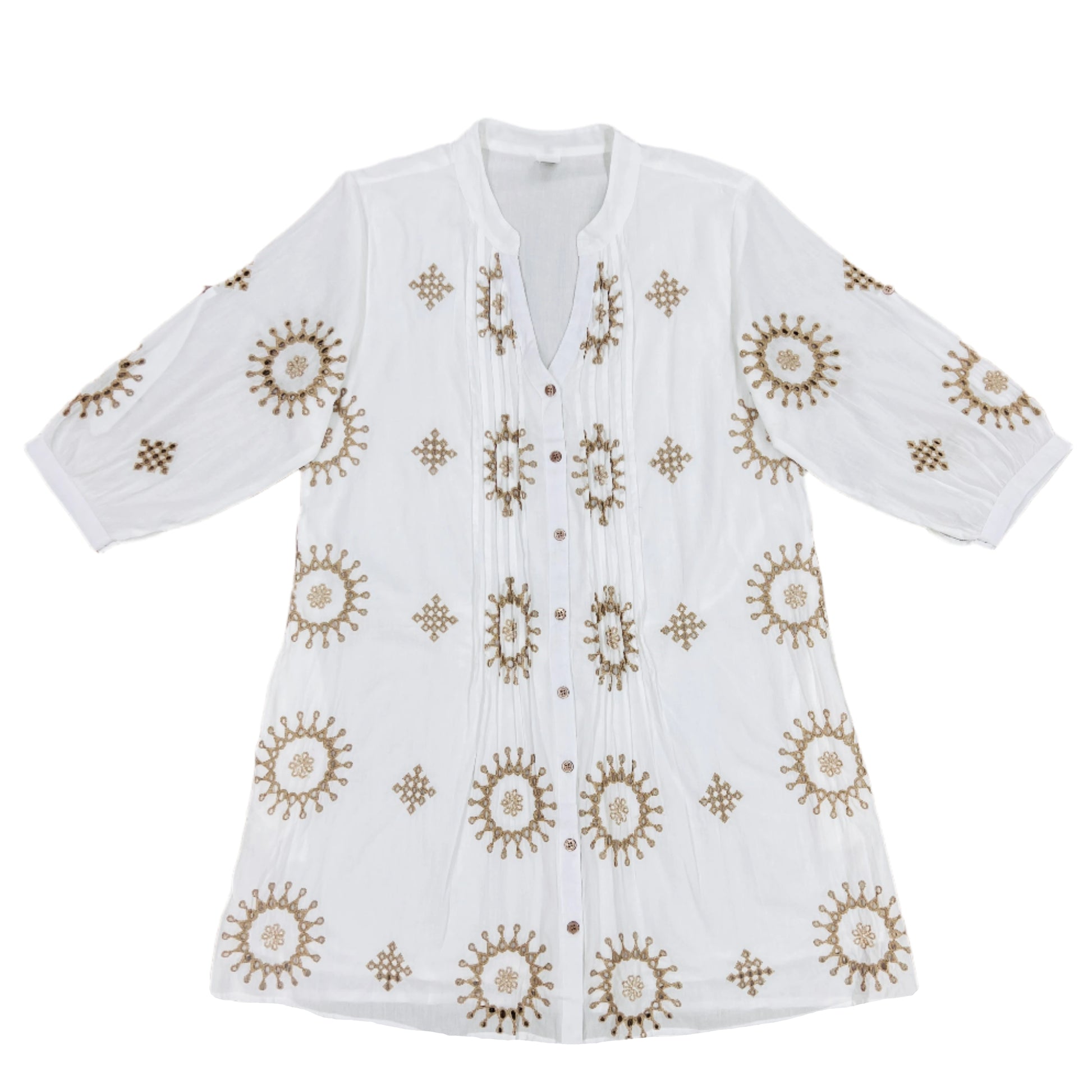 Blusa bordada (túnica) con mangas tres cuartos. Medidas : TALLA UNICA / Pecho: 58cm / Ancho Abajo: 68cm / Largo: 92cm / Largo de Manga: 45cm / Ancho de Brazo: 22cm / Ancho de puños: 15cm / Ancho Espalda: 43cm.