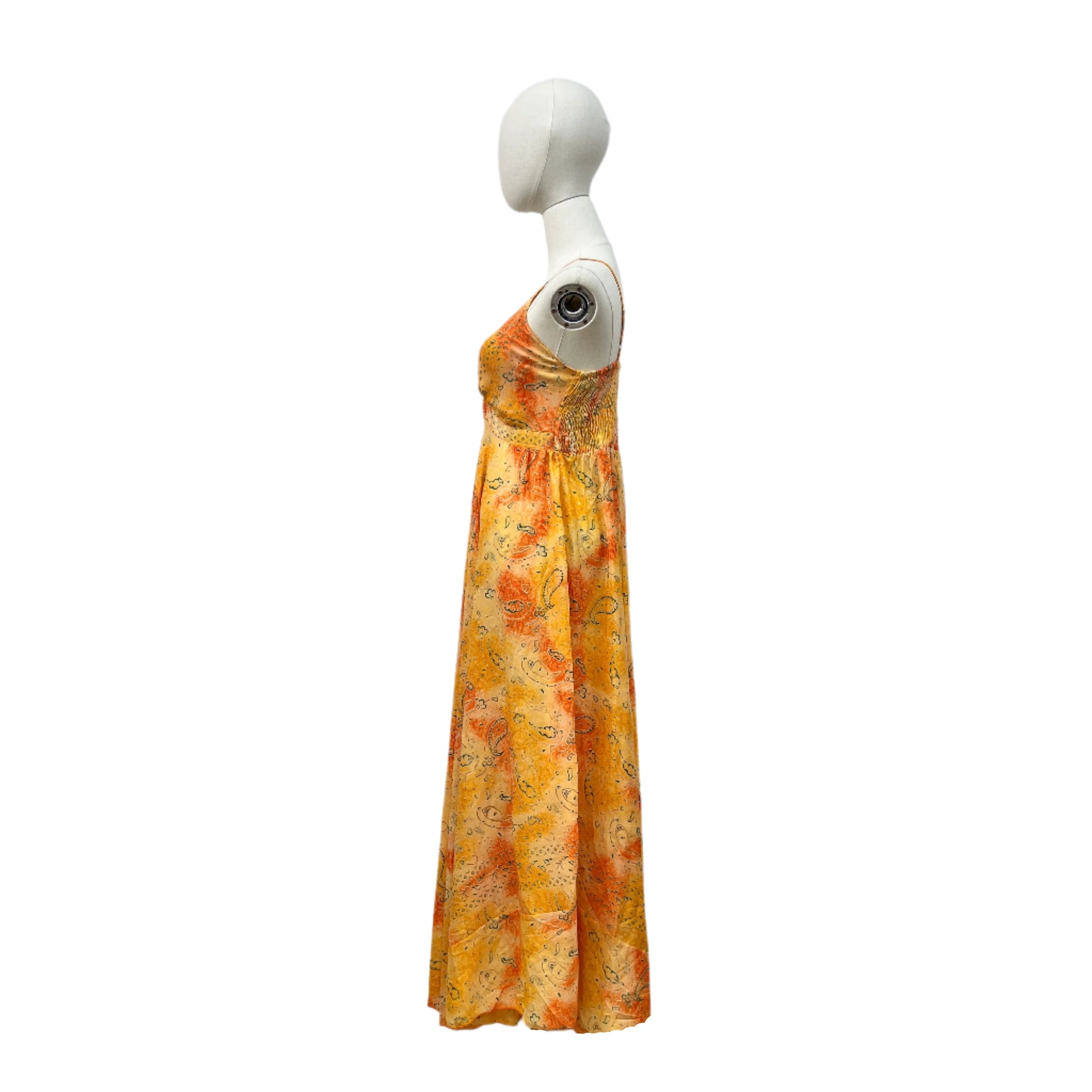 Vestido Largo / Medidas: Talla Unica / Pecho: Ajustable / Largo: Ajustable (135-145 cm) / Composición: Seda y Viscosa / Origen: Hecho en iNDIA.