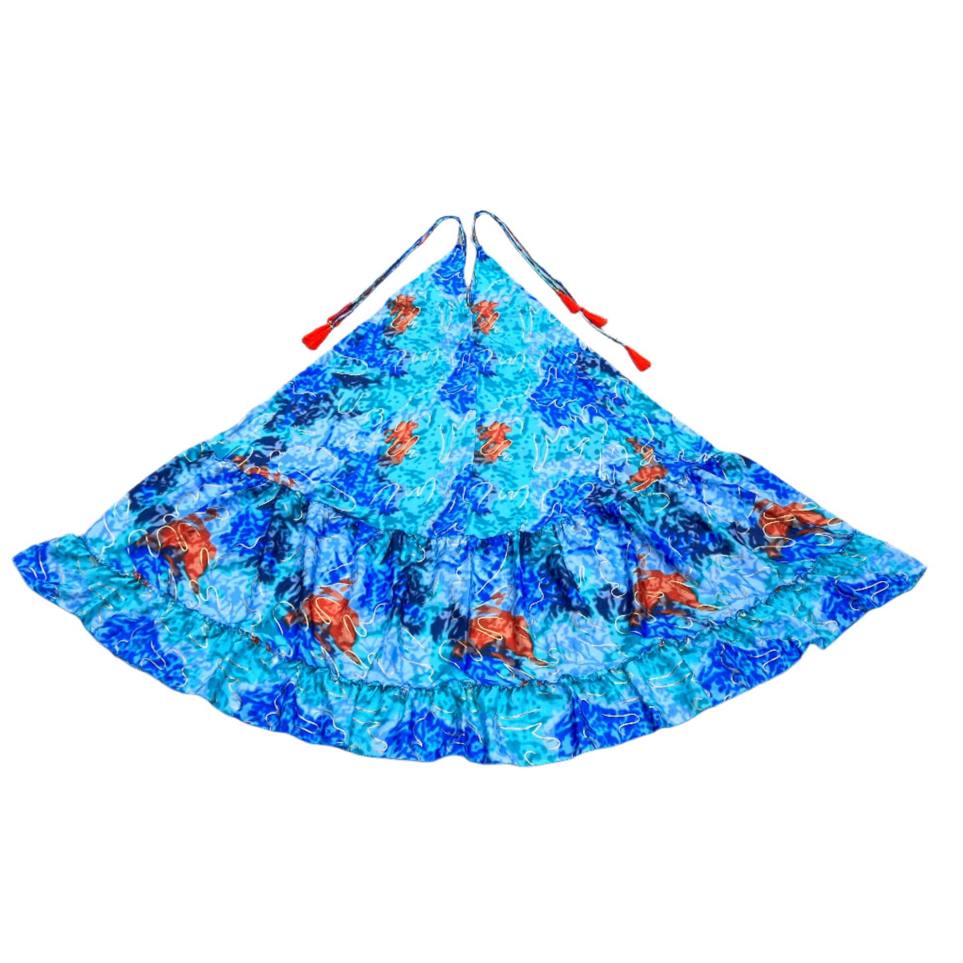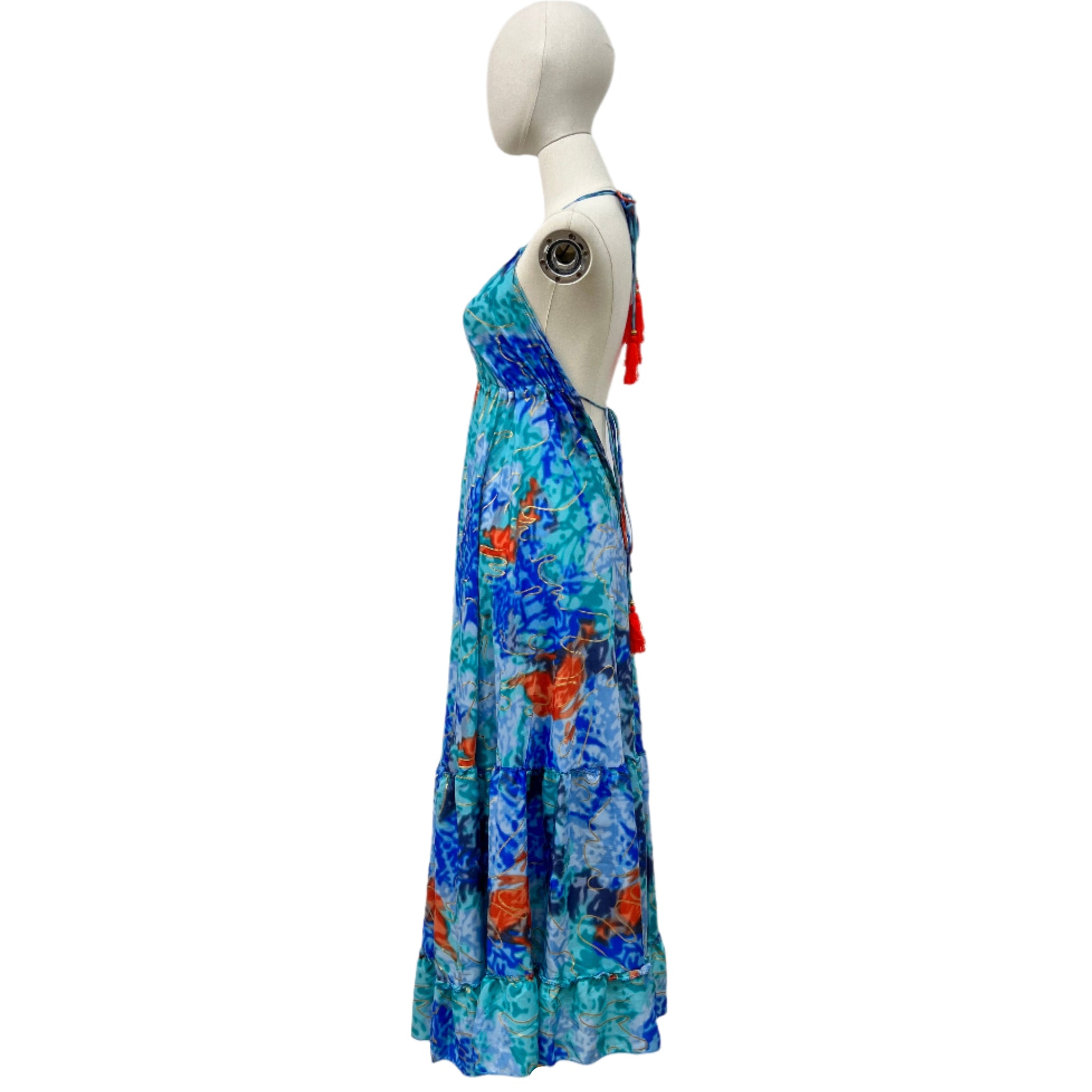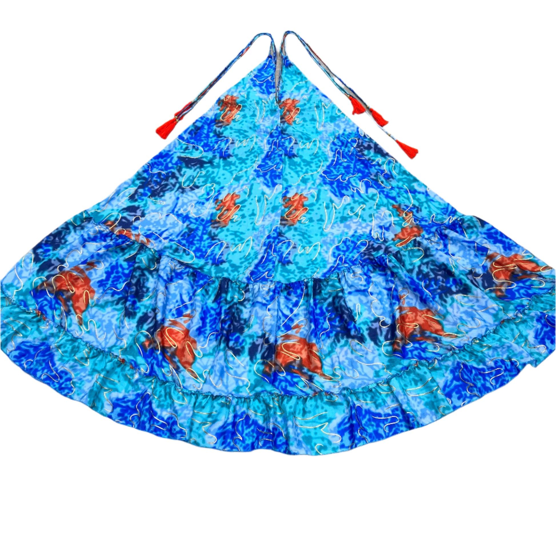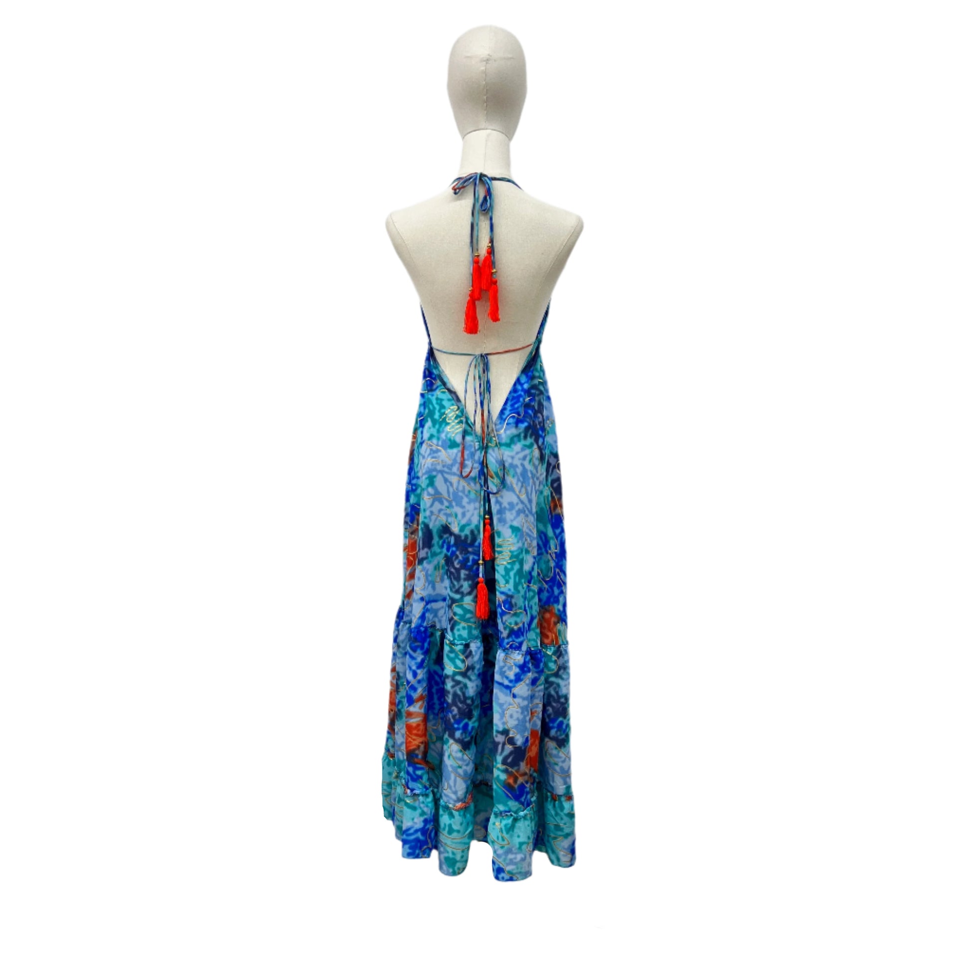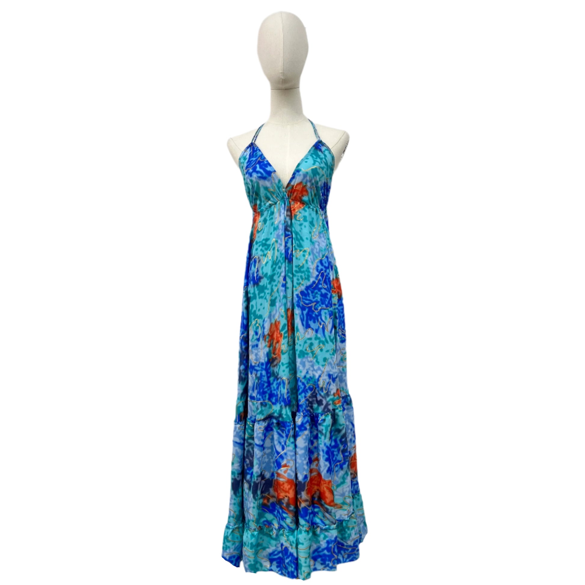 Vestido Largo / Medidas: Talla Unica / Pecho: Ajustable / Largo: Ajustable (135-170 cm) / Composición: Seda y Viscosa / Origen: Hecho en iNDIA.