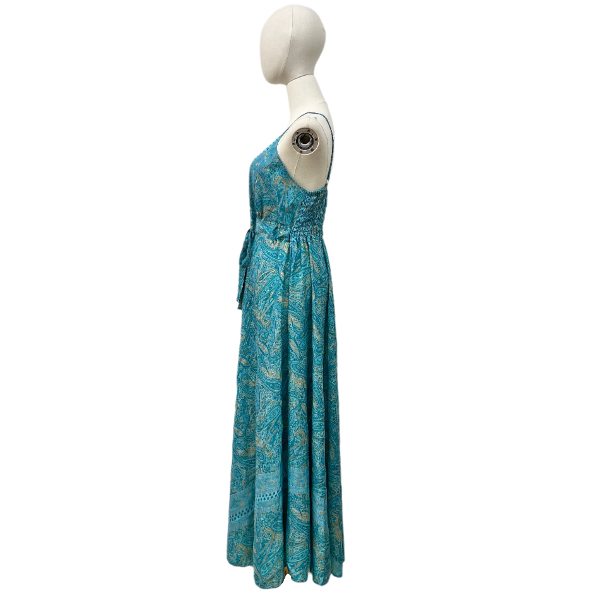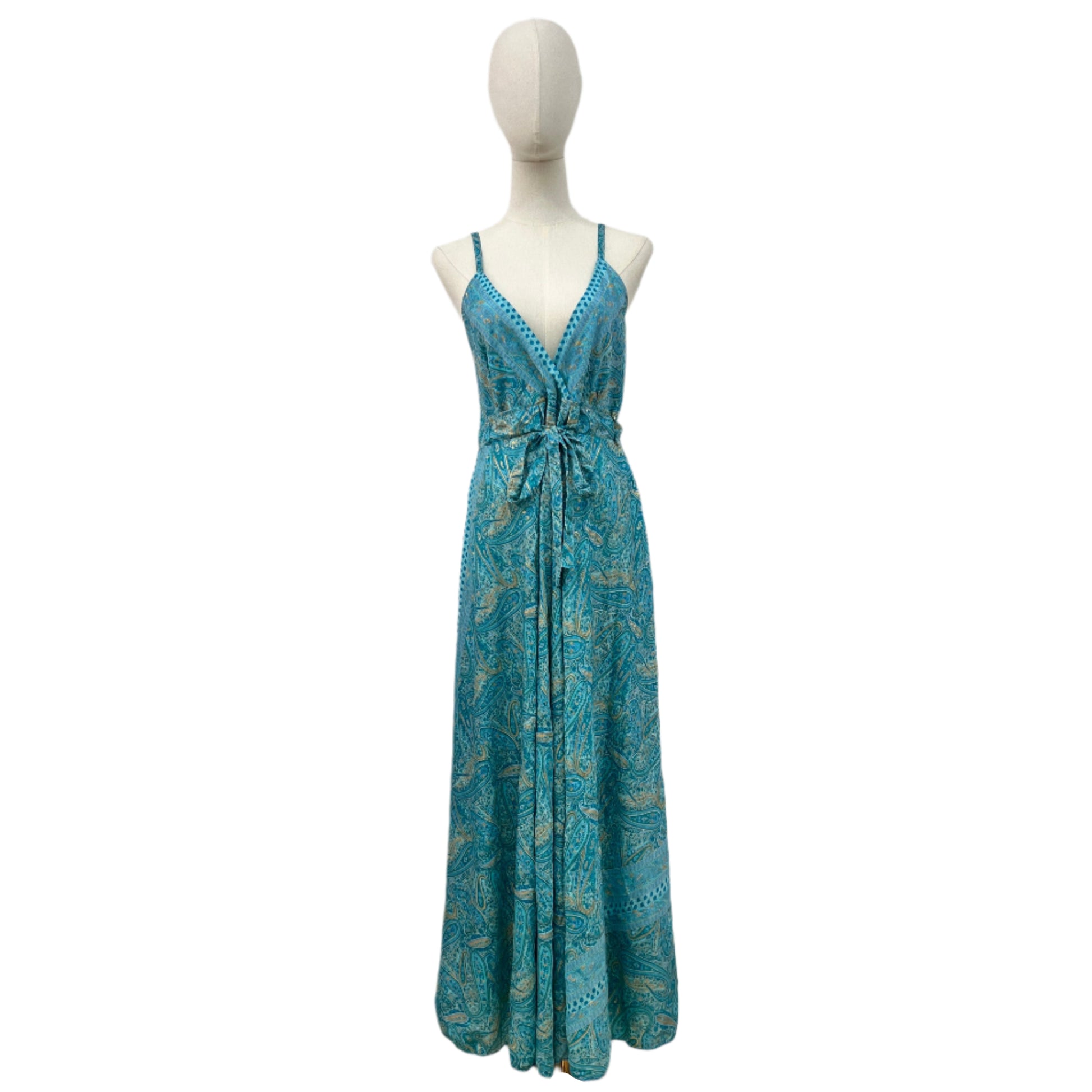 Vestido Largo / Medidas: Talla Unica / Pecho: Ajustable / Largo: Ajustable (130-150 cm) / Composición: Seda y Viscosa / Origen: Hecho en iNDIA.