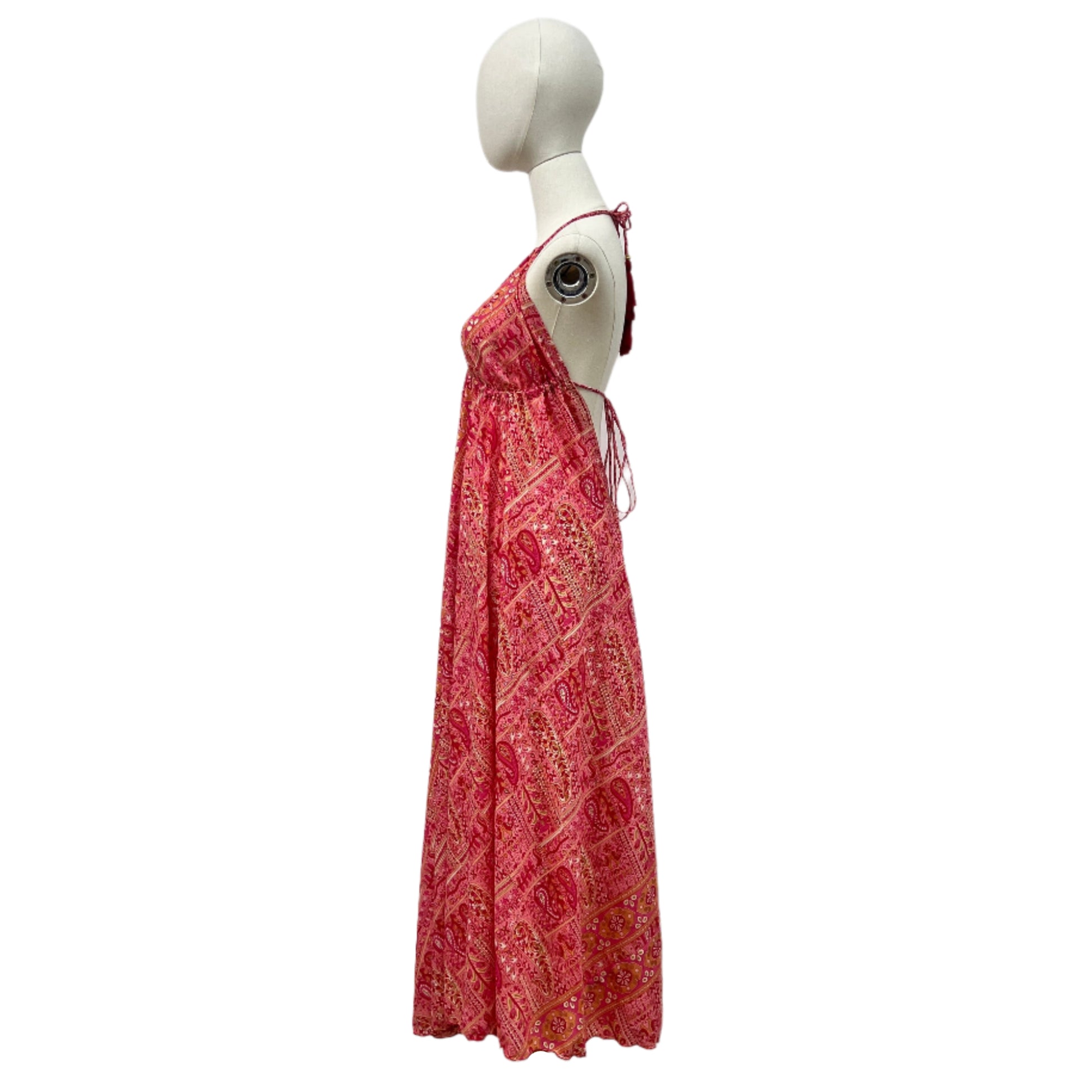 Vestido Largo / Medidas: Talla Unica / Pecho: Ajustable / Largo: Ajustable (130-160 cm) / Composición: Seda y Viscosa / Origen: Hecho en iNDIA.